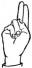 На ћирилици написано БУДИМИР ВИДОСАВЉЕВИЋ састоји се из 19 слова [?]. Исписано ћириличном једноручном азбуком за глувонеме: